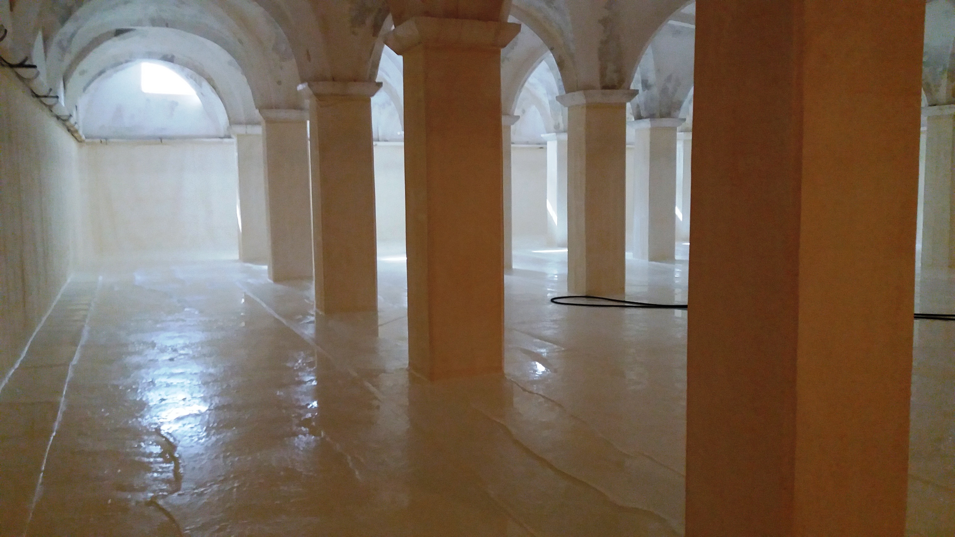 Los trabajos que comenzaron ayer se realizaran durante al menos 3 días. Al contar este depósito con 2 vasos simétricos de 800 m3, alternamos la limpieza de cada uno, así evitamos alteraciones en el suministro a los beatenses.