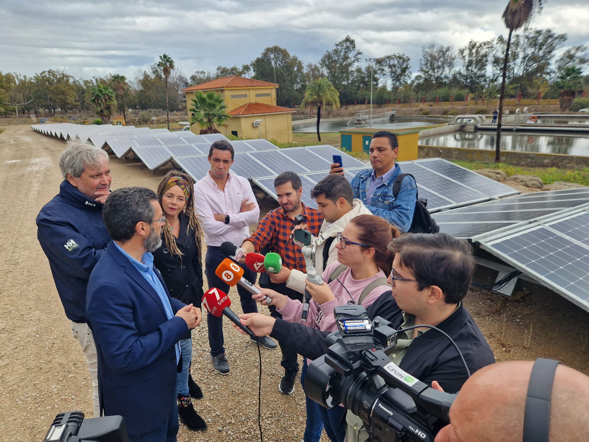 El alcalde y la concejala de Medio Ambiente han visitado el novedoso sistema de paneles solares retráctiles que Aqualia ha instalado como prueba en la planta, con una potencia de 75 kWp