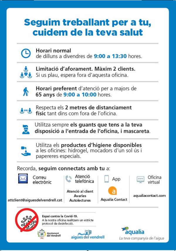 aigües del vendrell torna a obrir les oficines per a tu el dia 1 de juny