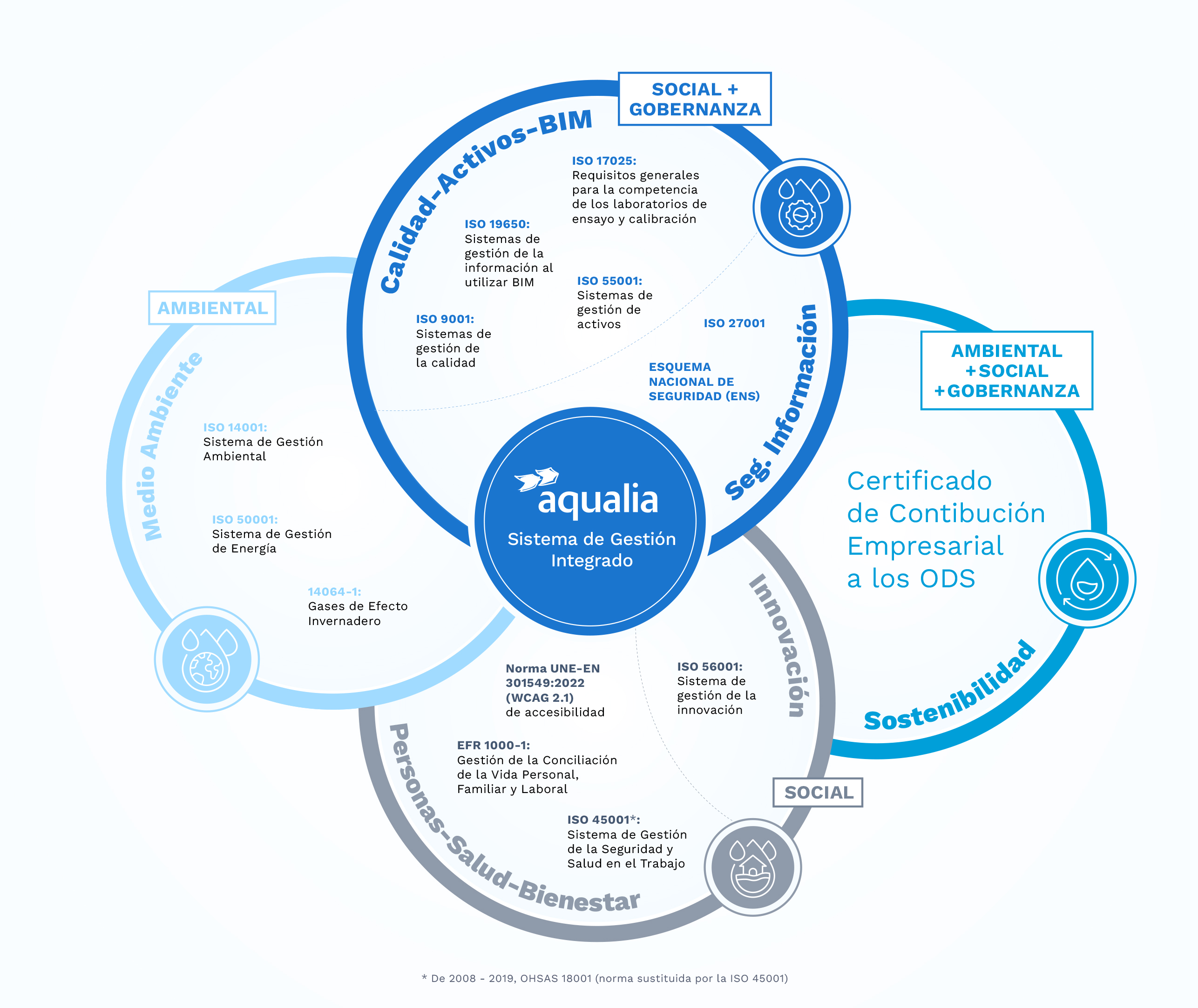 En Aqualia, creemos que la excelencia no es fruto del azar, sino del compromiso con la calidad, la mejora continua y la sostenibilidad. Por eso, apostamos por sistemas de gestión certificados que nos permiten ofrecer un servicio más eficiente, seguro y responsable.